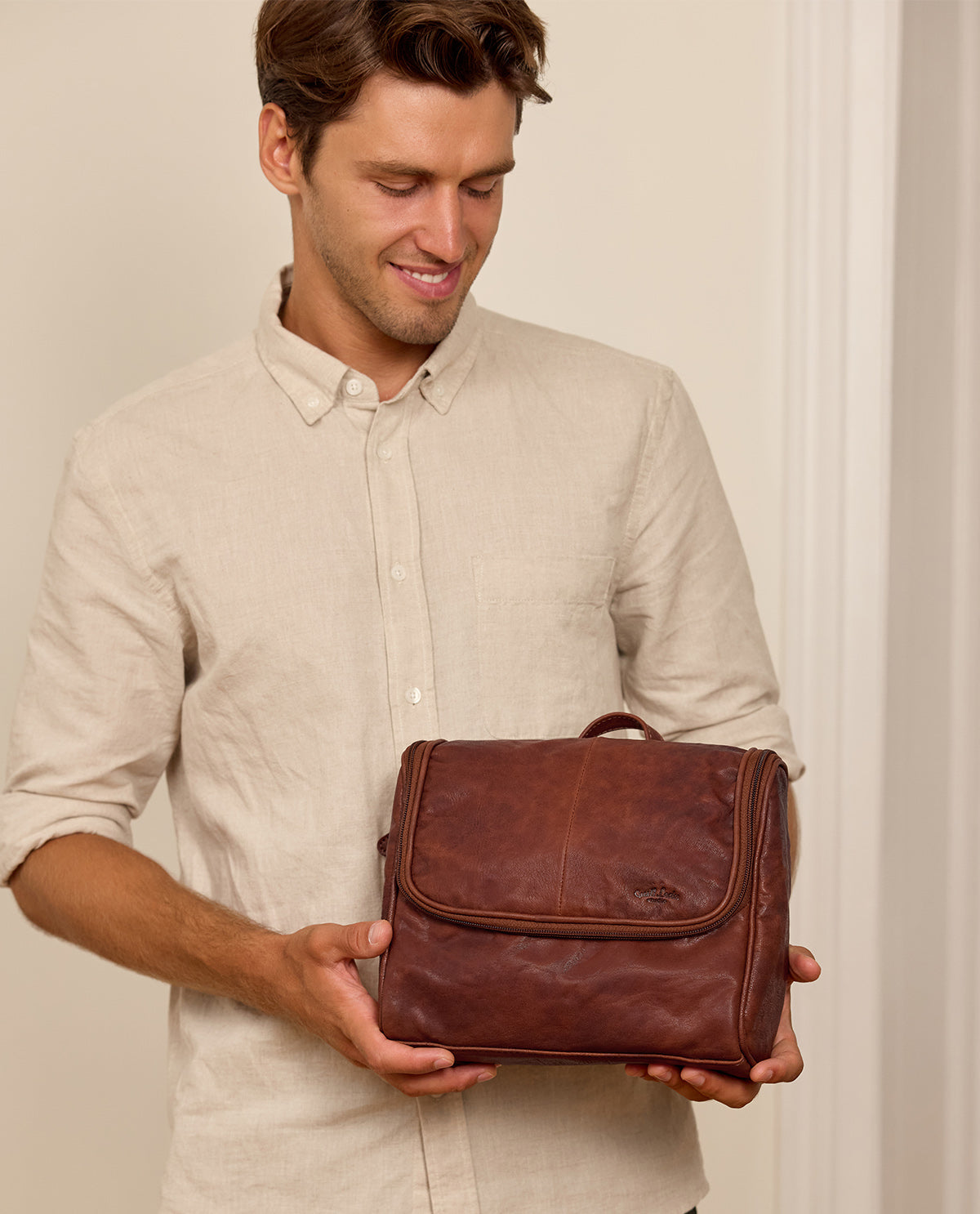 Praktisch und stilvoll – Die Leder-Waschtasche „Aidan“