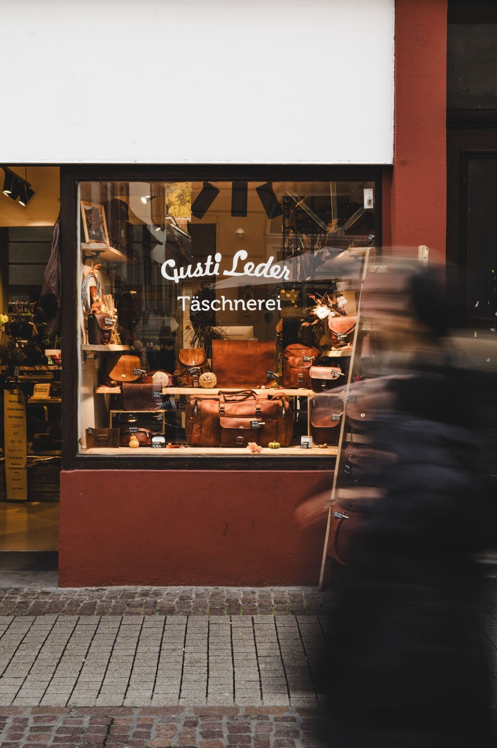 In our quaint store on Hauptstrasse, you will find a large selection of unique leather products. From wallets to fanny packs to city backpacks, we have everything your heart desires. Come by, smell the scent of leather goods, and convince yourself of our products. We look forward to your visit! Your Gusti Team Heidelberg
