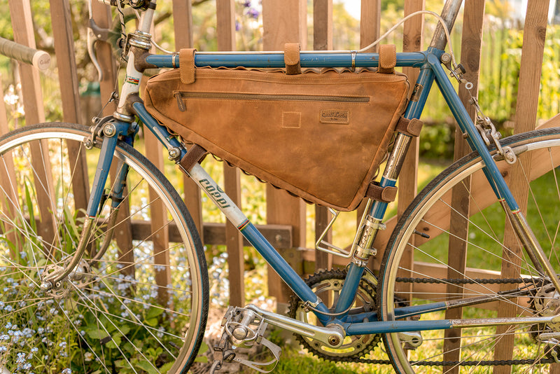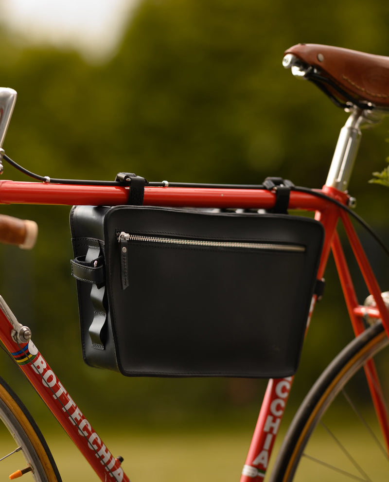 Frame bags offer a slim and practical storage solution without taking up space on the luggage rack. Simply attach them to the frame tube with the sturdy leather straps. Light and compact, they protect your essentials without hindering you while riding.