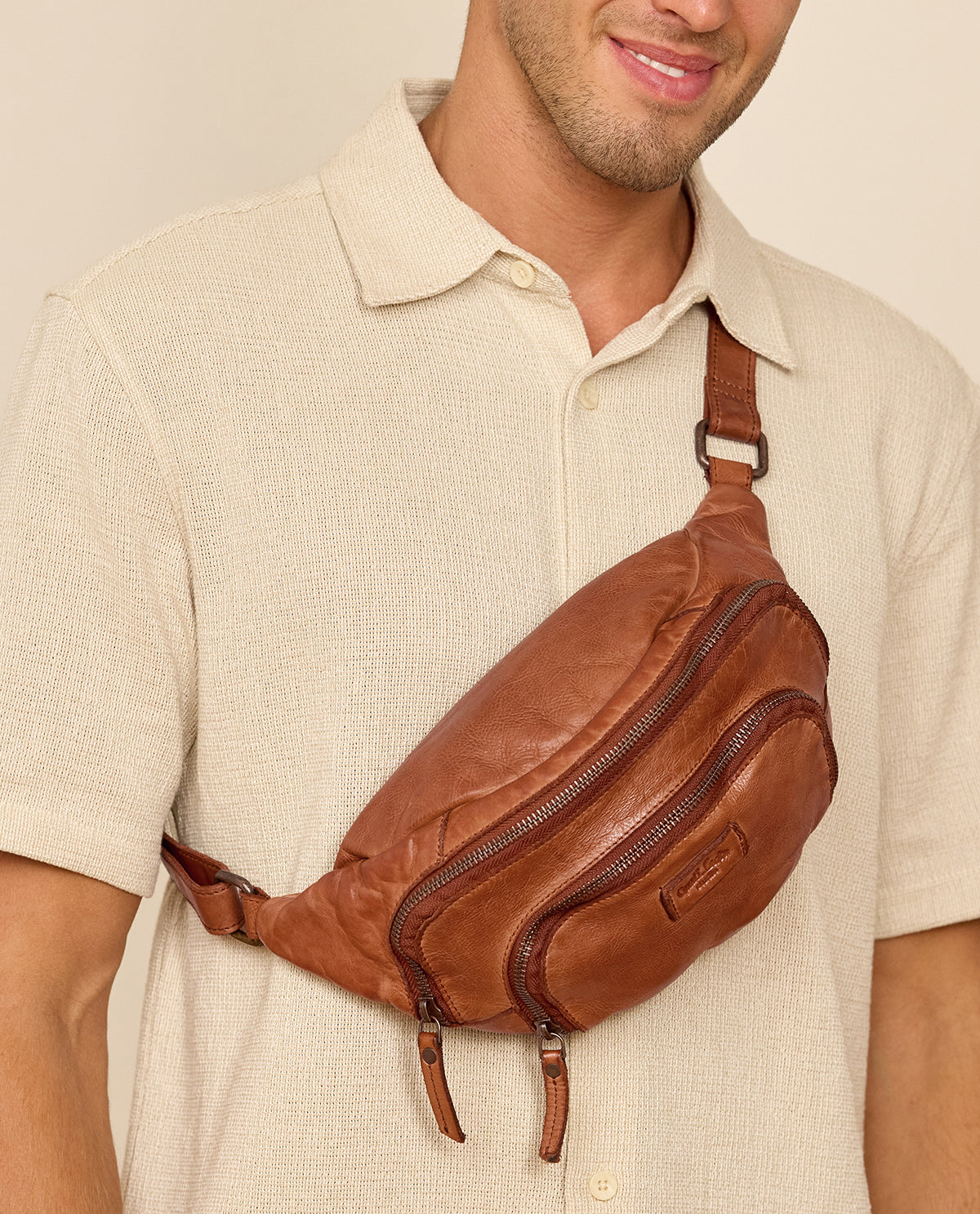 Are you looking for a cool belt bag that you can wear during festival season? Something handy where you can keep snacks or your essentials? Then “Sverre” is exactly what you've been looking for! This chic vintage bag is made from sturdy cowhide leather and always looks good. There's plenty of space in the large main compartment for your belongings. You'll find two zipped pockets on the front of the bag where you can keep your essentials. Bring on Coachella! But that's not all... This spacious belt bag can be used all year round. Keep your wallet, keys and phone safe at concerts during the winter months.