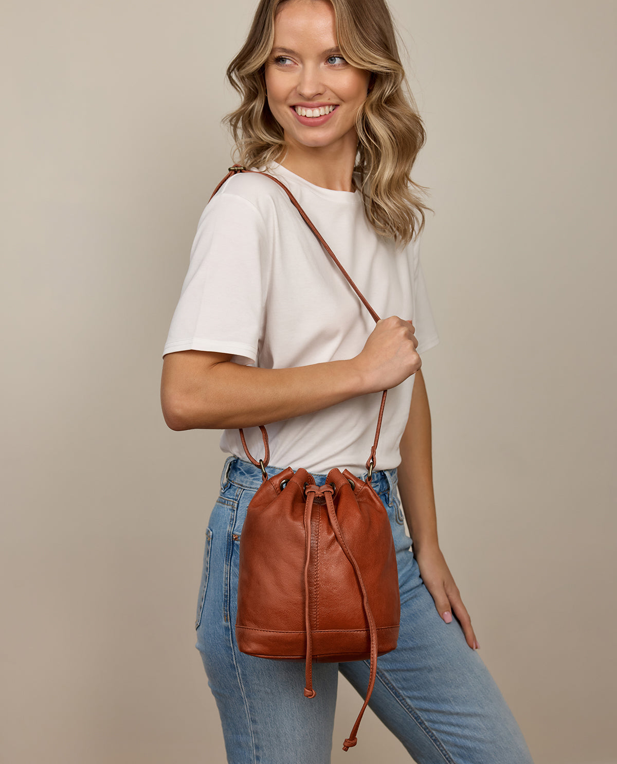 Heading into the city, the park, or meeting friends for drinks? Do you need a loyal companion that can accompany you to any event? Our bucket bag “Ivy” is exactly what you need! This soft cowhide leather bag will win you over with her casual vintage bucket design. No matter if you’re heading to a party, brunch, or a picnic, “Ivy” is perfect for any occasion!