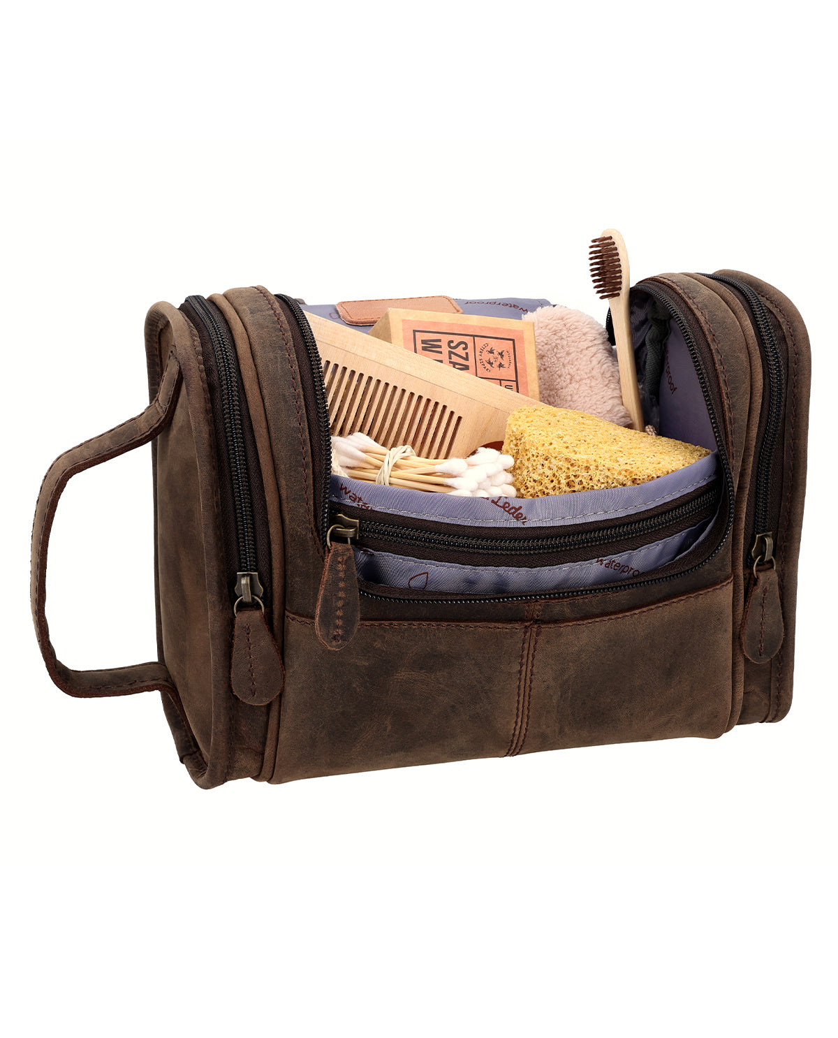 You could play hide-and-seek in this toiletry bag if you were an elf. Super spacious “Chester” has plenty of space for your toiletries. There are multiple pockets inside where you can organise your bathroom essentials. Use the two side pockets for things you need easy access to. Hang “Chester” up using the hanging loop while you’re using him. “Chester’s” lining is water-resistant, so no need to worry about small spillages. We’ve created a Gusti Leather toiletry bag that isn’t just functional, it’s super stylish too. Choose between a stylish brown or elegant black toiletry bag for your next trip away. What more could you want? You’ll never have to compromise in the bathroom again with our spacious toiletry bag “Chester”.