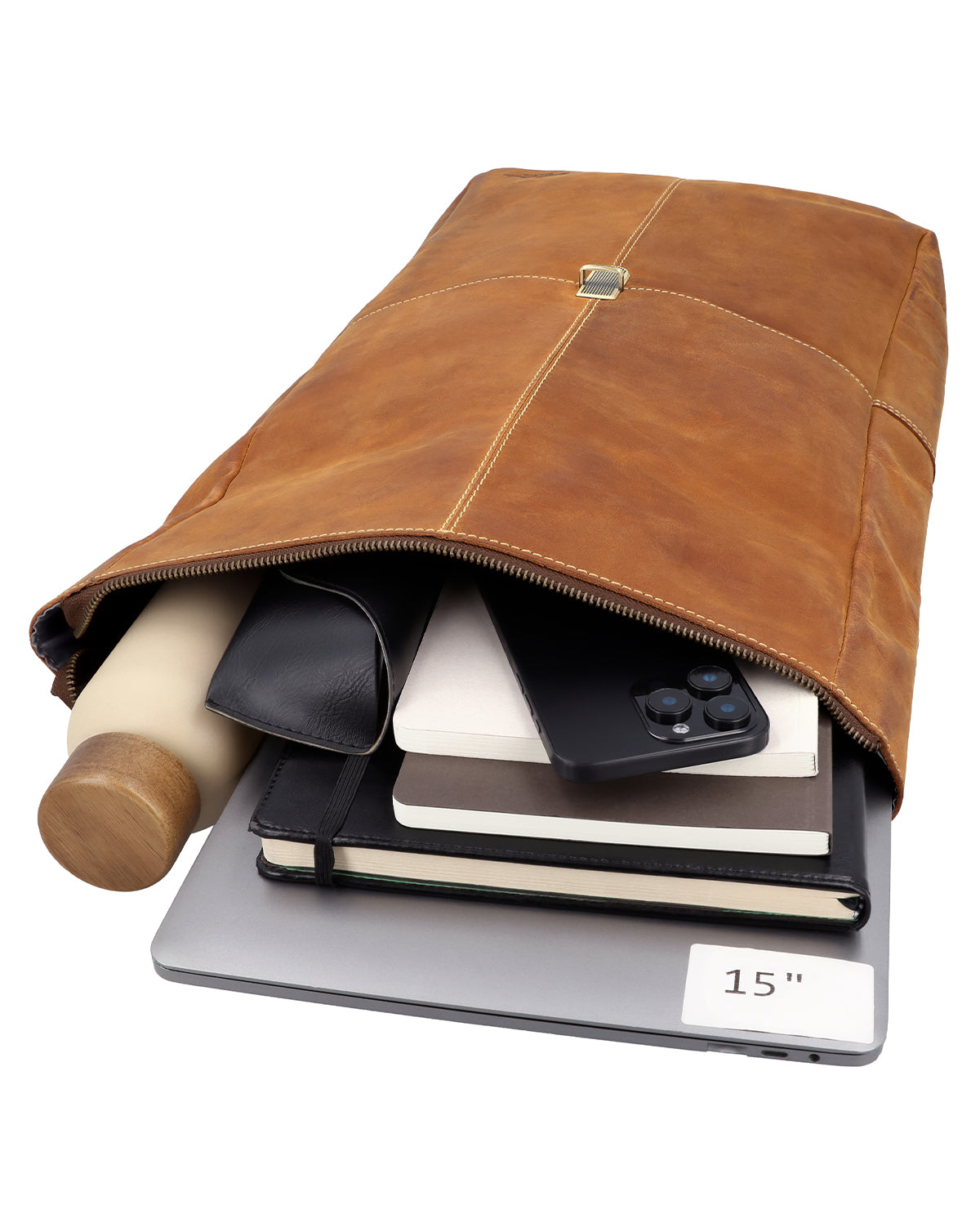Backpack Leather Backpack Vintage Women Men Brown Leather 13L