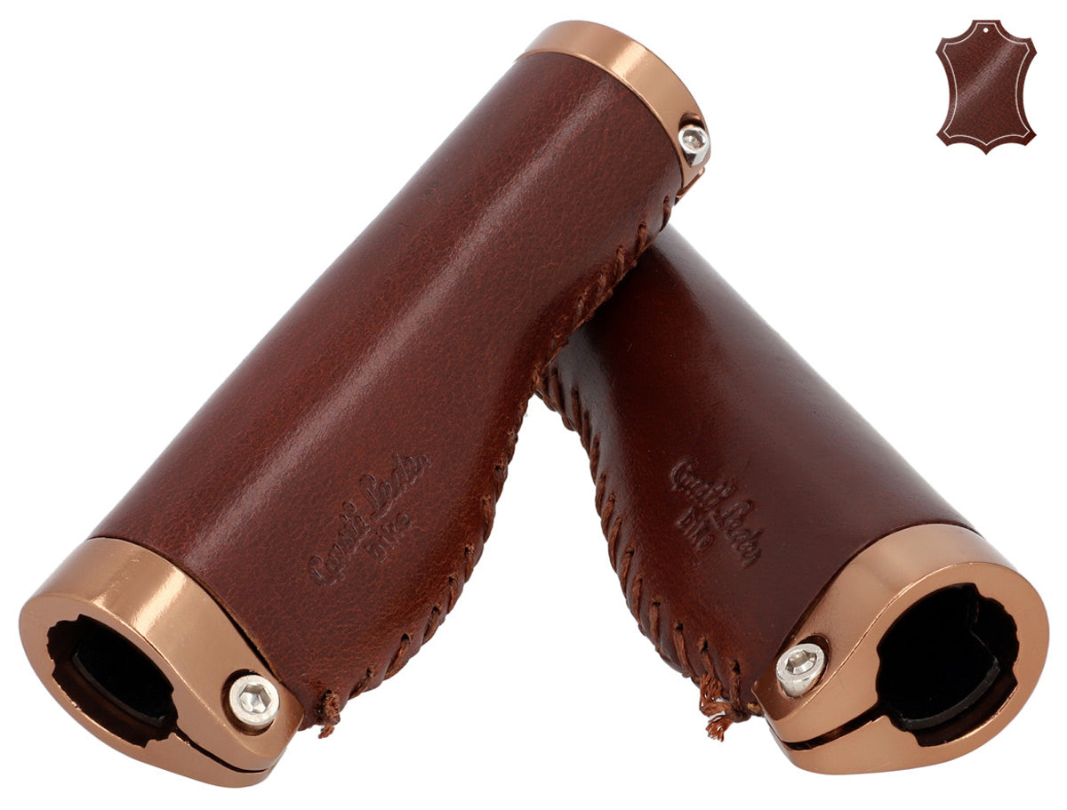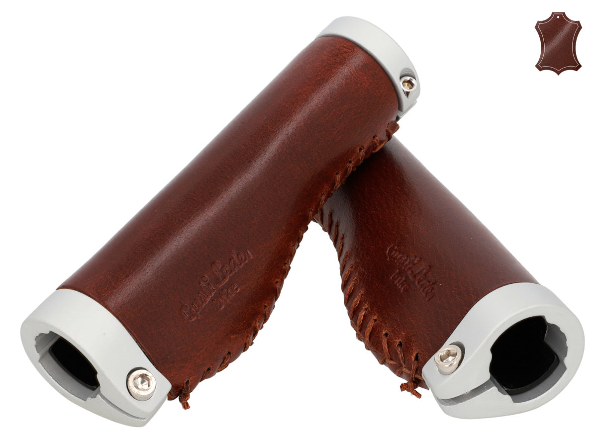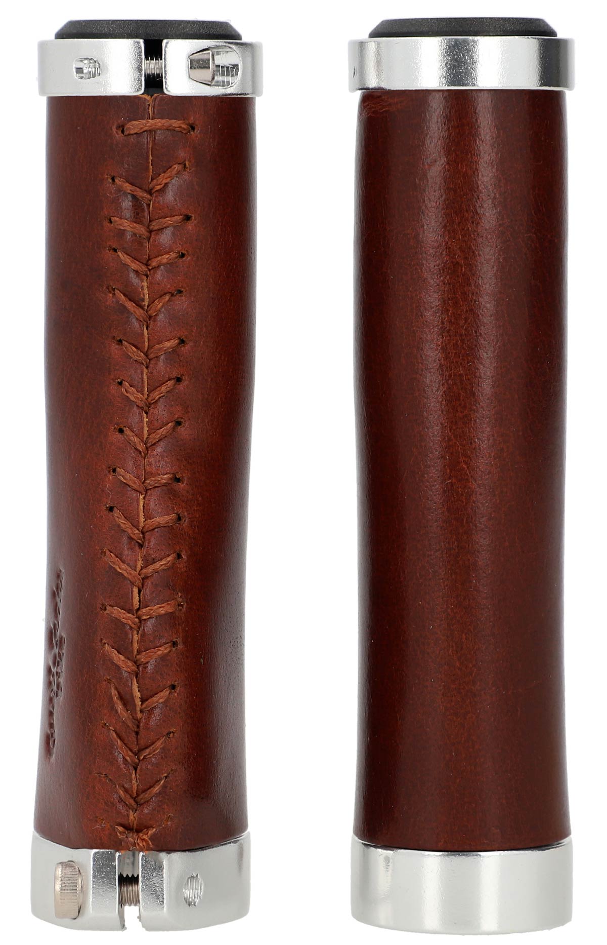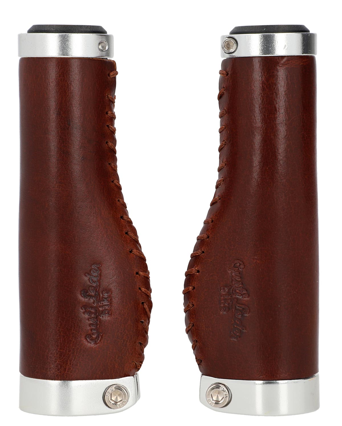 The leather handlebar grips "Phil A." visually match a trendy single-speed bike just as well as a classic Dutch bike and can be easily mounted. Their high-quality material mix of colored aluminum and 100% genuine leather ensures excellent grip and consistently good steering behavior. At the same time, they ideally adapt to the anatomy of your hands, cushion shocks and vibrations, and thus increase the grip security. After a short break-in period, you won't want to miss the noticeable comfort and pleasant feel of these grips.