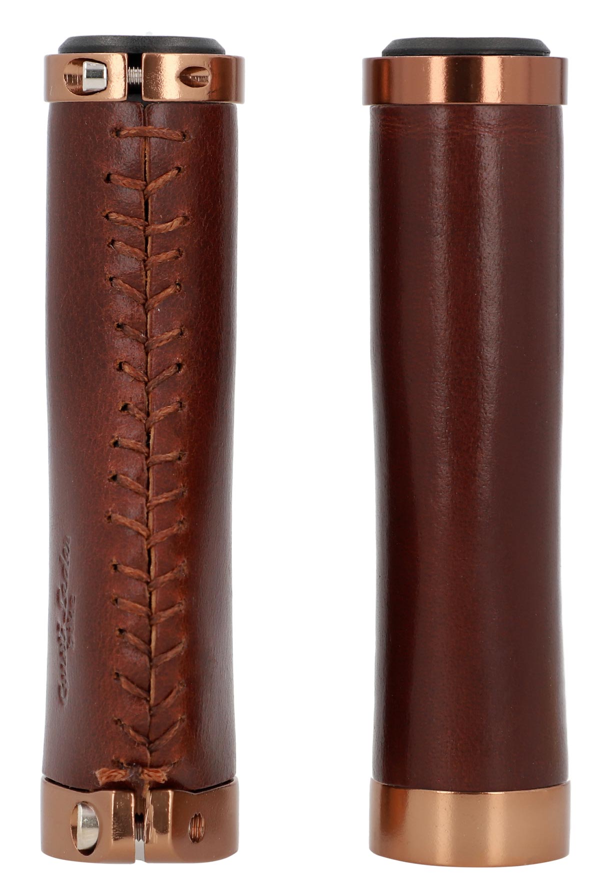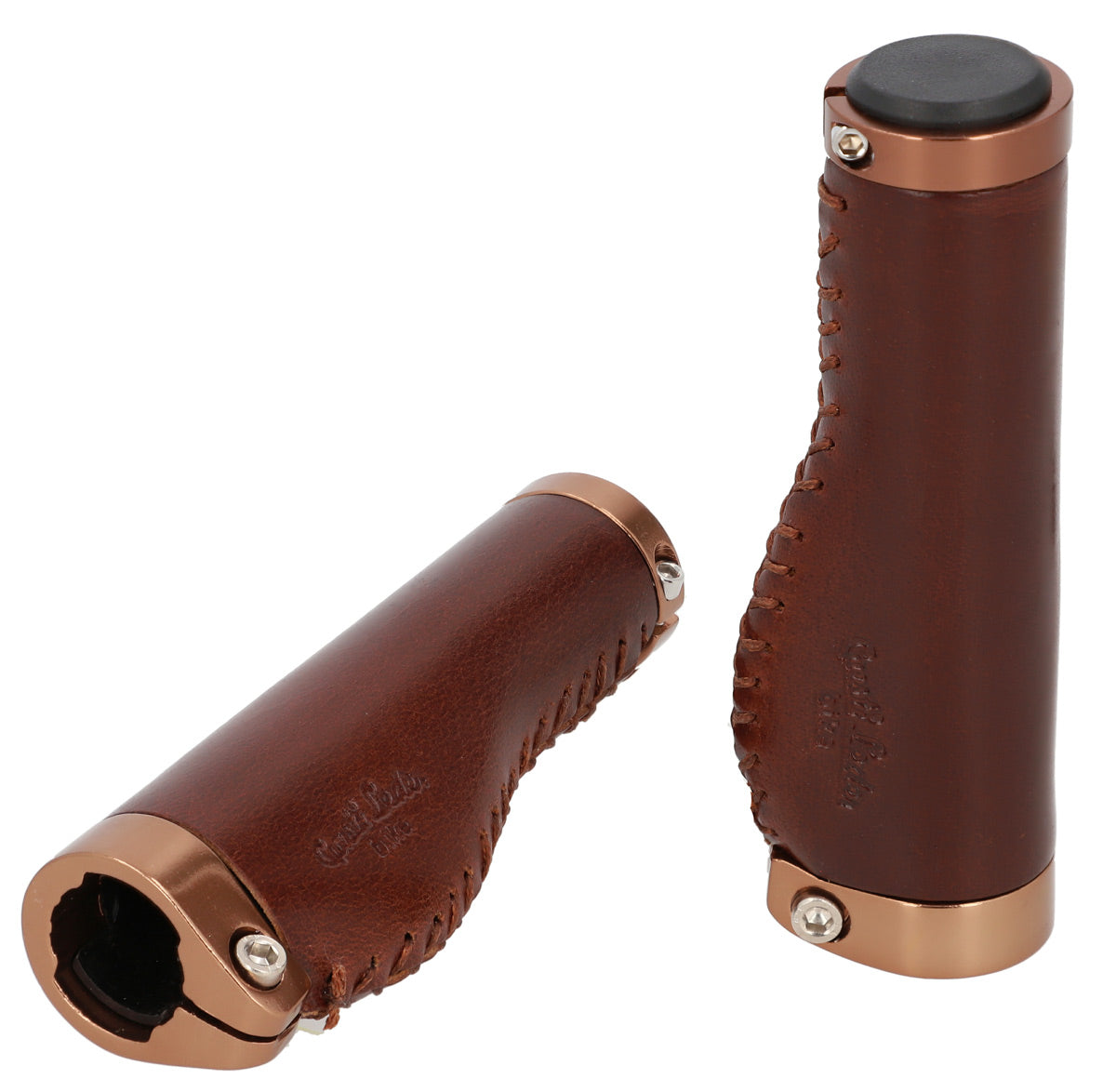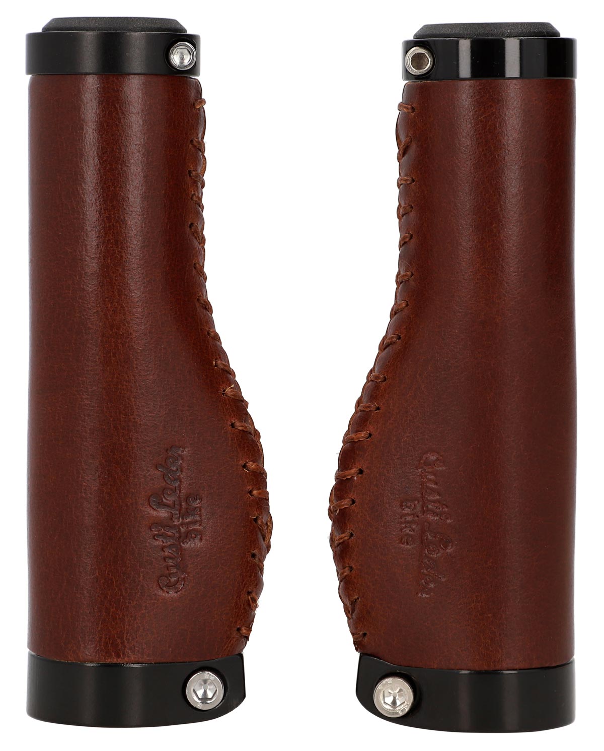 The leather handlebar grips "Phil A." visually match a trendy single-speed bike just as well as a classic Dutch bike and can be easily mounted. Their high-quality material mix of colored aluminum and 100% genuine leather ensures excellent grip and consistently good steering behavior. At the same time, they ideally adapt to the anatomy of your hands, cushion shocks and vibrations, and thus increase the grip security. After a short break-in period, you won't want to miss the noticeable comfort and pleasant feel of these grips.