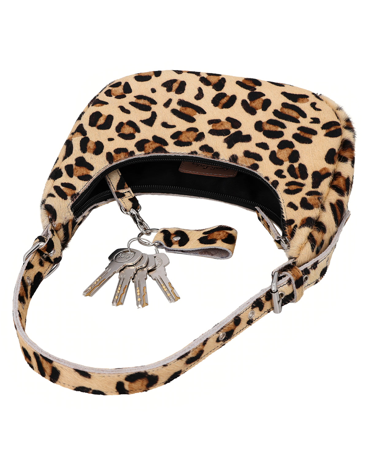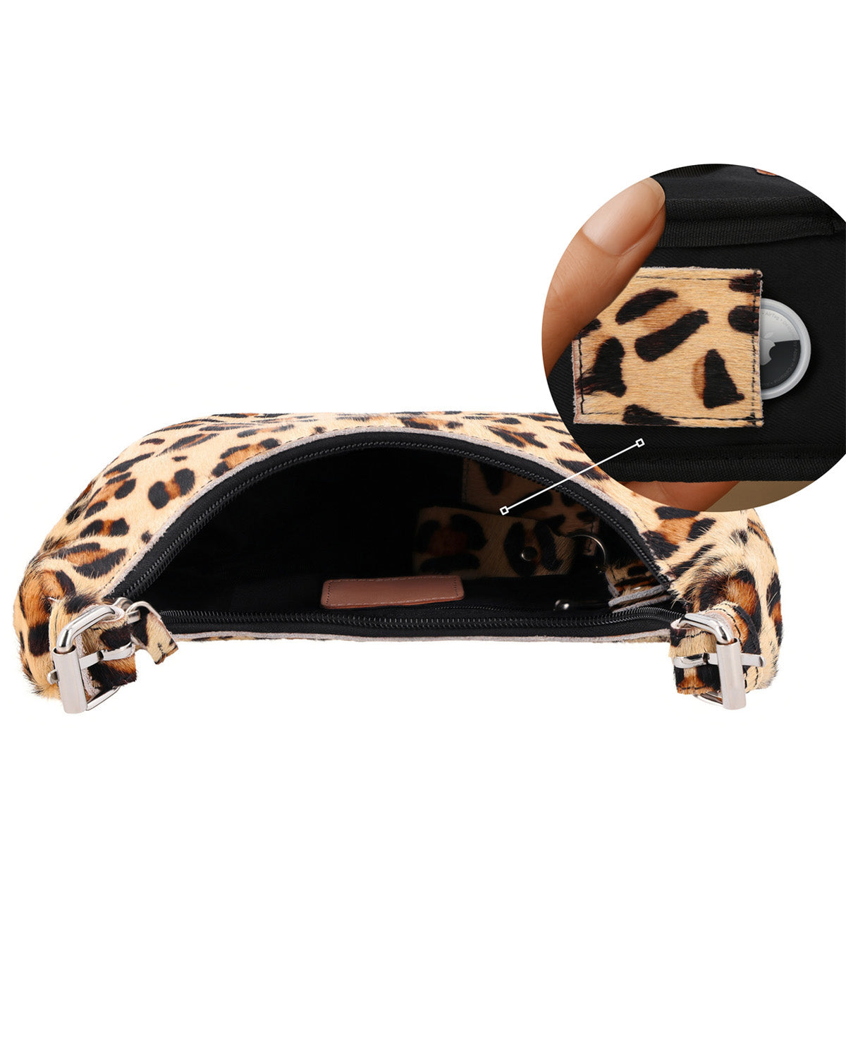 Handbag with AirTag compartment, keychain and animal print