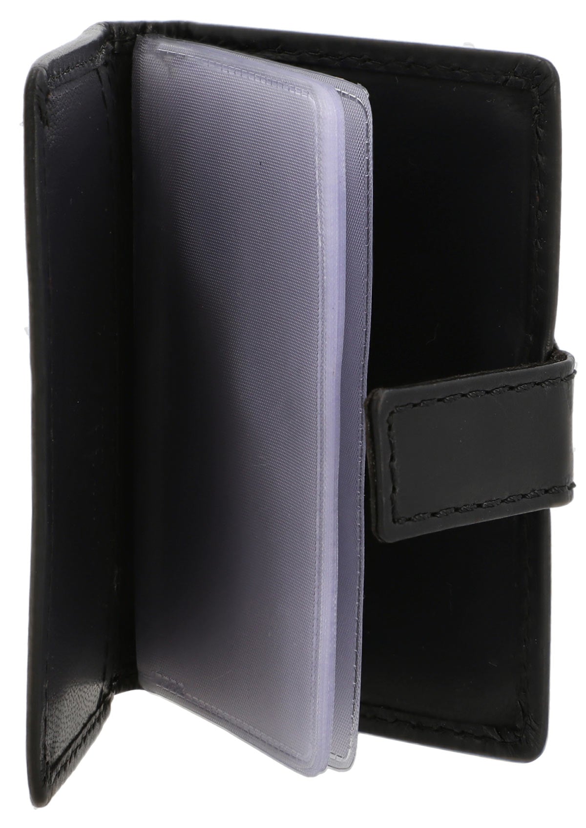 This card case offers space for up to 16 cards. Additionally, all compartments are transparent, making it easy to find your cards. The dark, high-quality tanned goatskin leather with beautiful decorative stitching gives "Davis" stability, shape, and a classic look. It can be closed with a snap fastener. Whether as a stylish accessory or as a gift for a loved one, simply stash it in your jacket pocket and you're ready to go – with "Davis"!