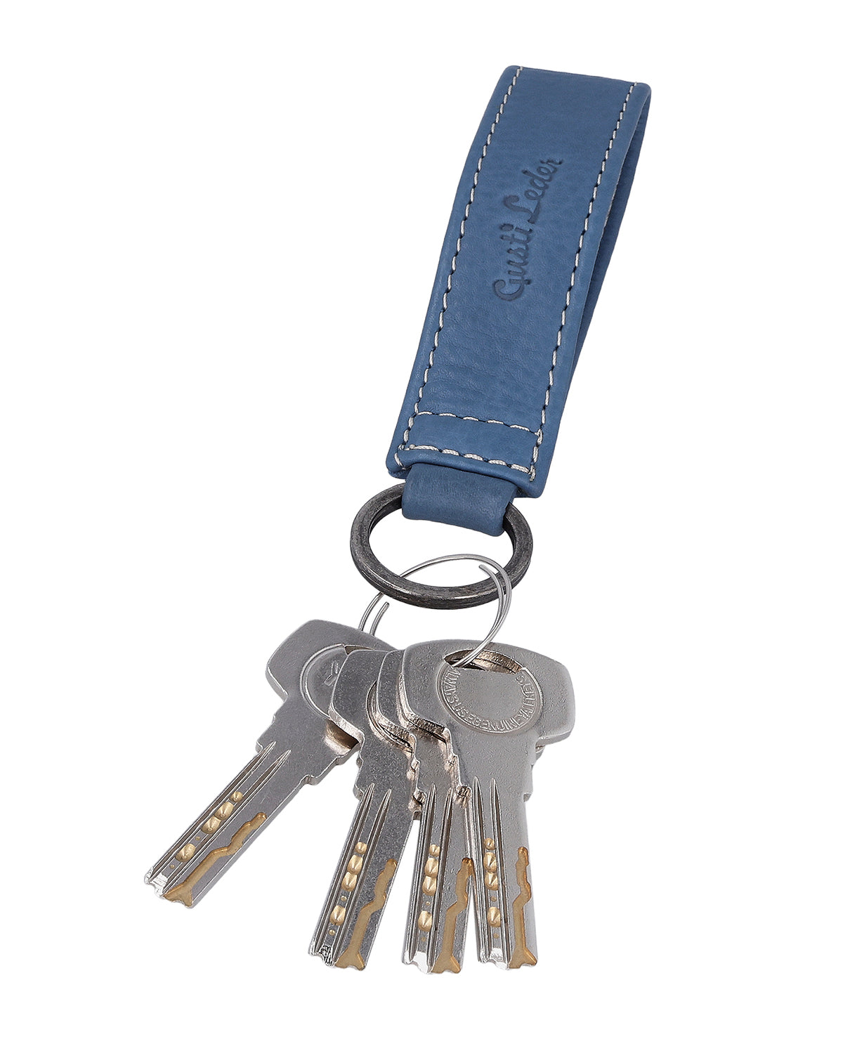 Keyring key strap leather charm women men blue leather