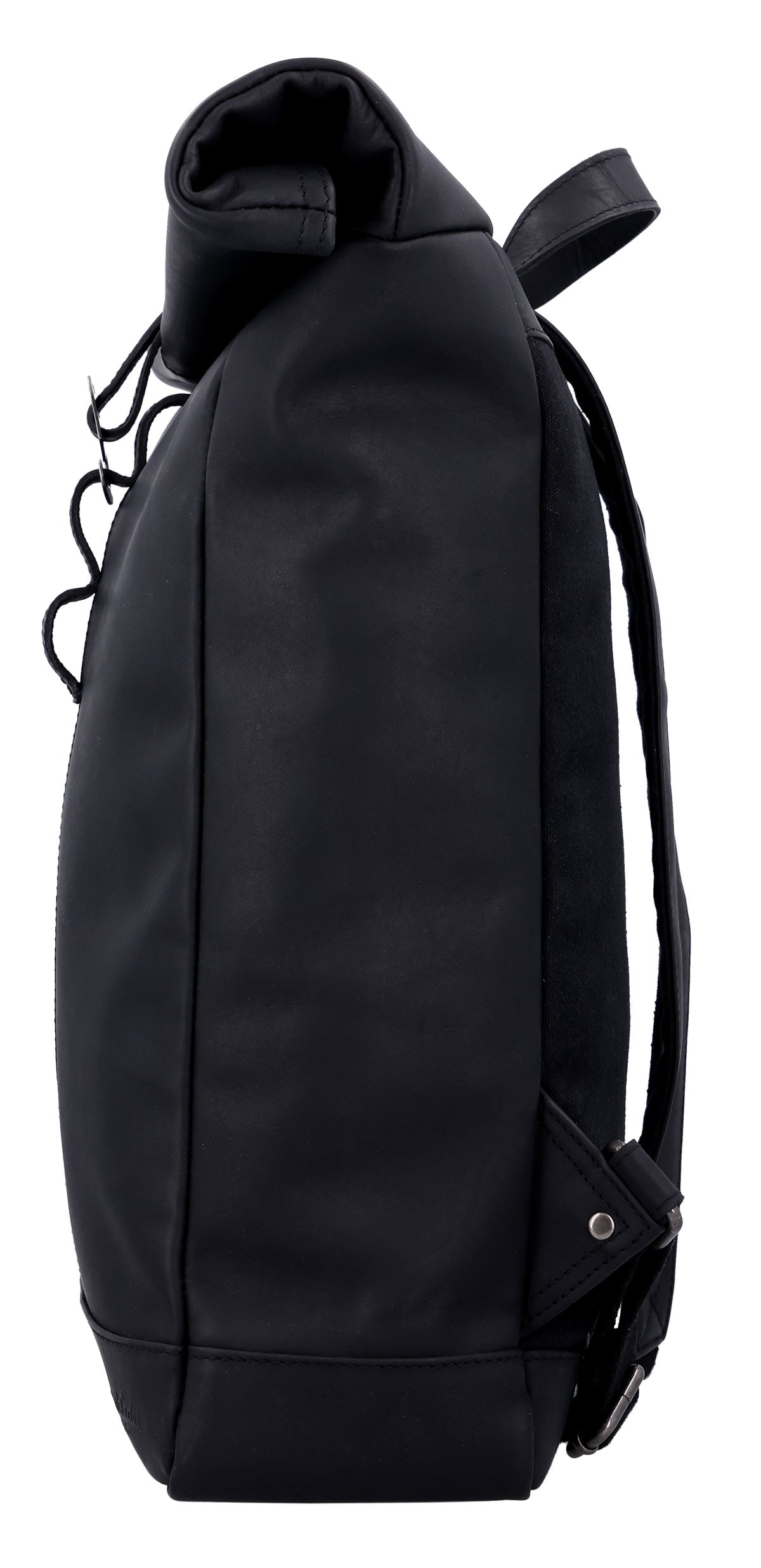 Whether for school, university, or work – our "Bendik" roll-top backpack always fits. Because it impresses with its flexibility, high wearing comfort, and generous space. This classic, robust daypack made of black leather stands out especially with its trendy roll-top – a look you just can't miss at the moment.