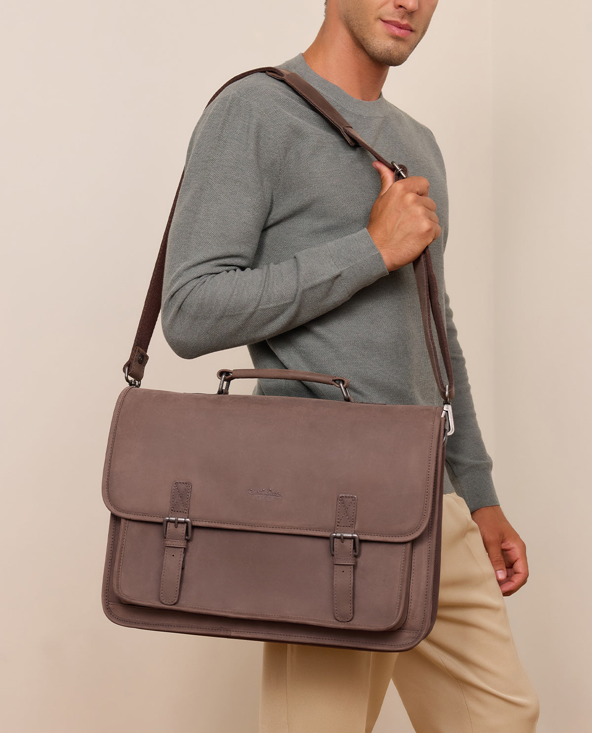 Without a doubt, "Elmar" has everything you expect from a leather shoulder bag: the classic look combined with a subtle finish – depending on the color, in a trendy used look or in timeless elegant smooth leather. This makes "Elmar" equally suitable for a casual workday as well as for the upcoming big business meeting. And for those who are still not convinced by "Elmar", this classic briefcase made of high-quality processed leather will impress at the latest with its enormous and generous space thanks to the numerous compartments.