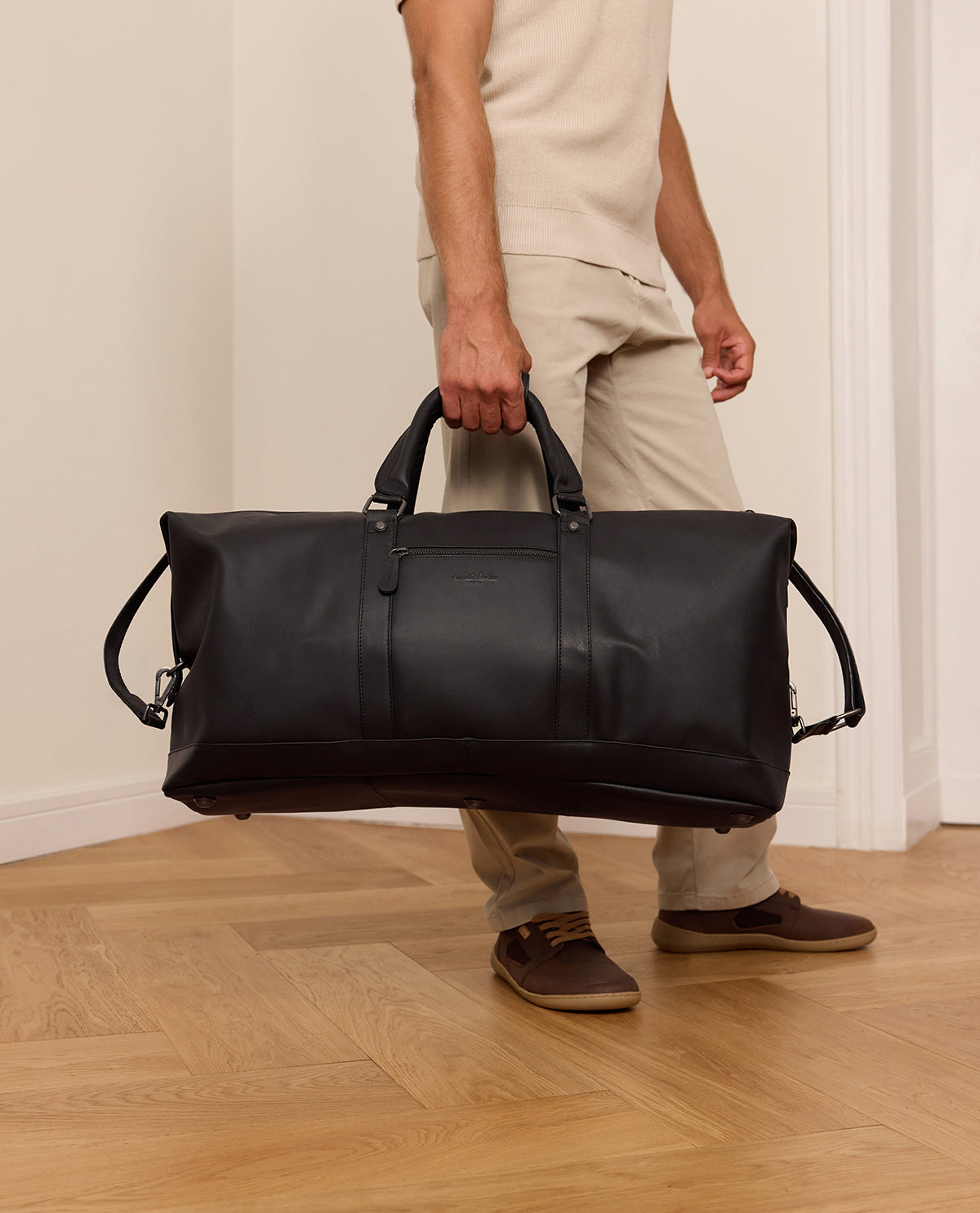 Because this very spacious leather travel bag not only impresses with its timeless-classic design but also convinces with carrying comfort and an incredible amount of space. So there is enough room for extra clothes and shoes as well as your current favorite book, the toiletry bag, or even your notebook if you need to finish some work in the evening. On the front, there is also an additional zippered outer pocket, where you can store things like keys, tissues, a small emergency pharmacy, and much more. The trendy used look of the leather gives "Fernando" the charm of a vintage travel bag without foregoing the advantages of modern travel bags. In terms of comfort, "Fernando" doesn't compromise. Because with the two sturdy carrying handles, complemented by a detachable shoulder strap, you can carry "Fernando" just the way you want.