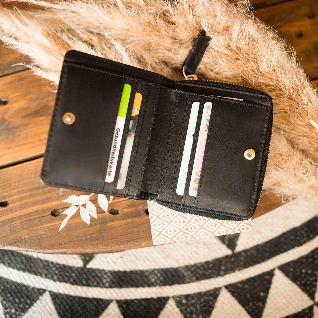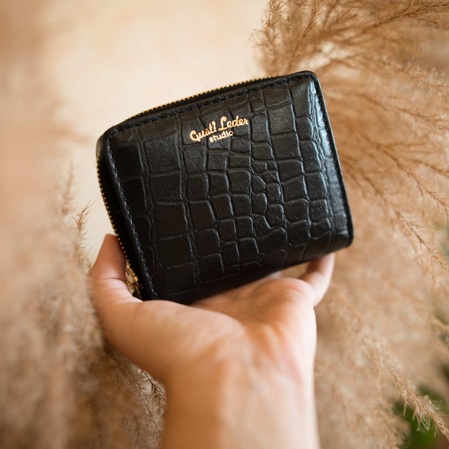 Are you looking for a classic purse that has enough space for your cards and an extra-large coin pocket? Then you’ll love our trendy crocodile-skin purse “Monika”! She’s suitably stylish and super functional.