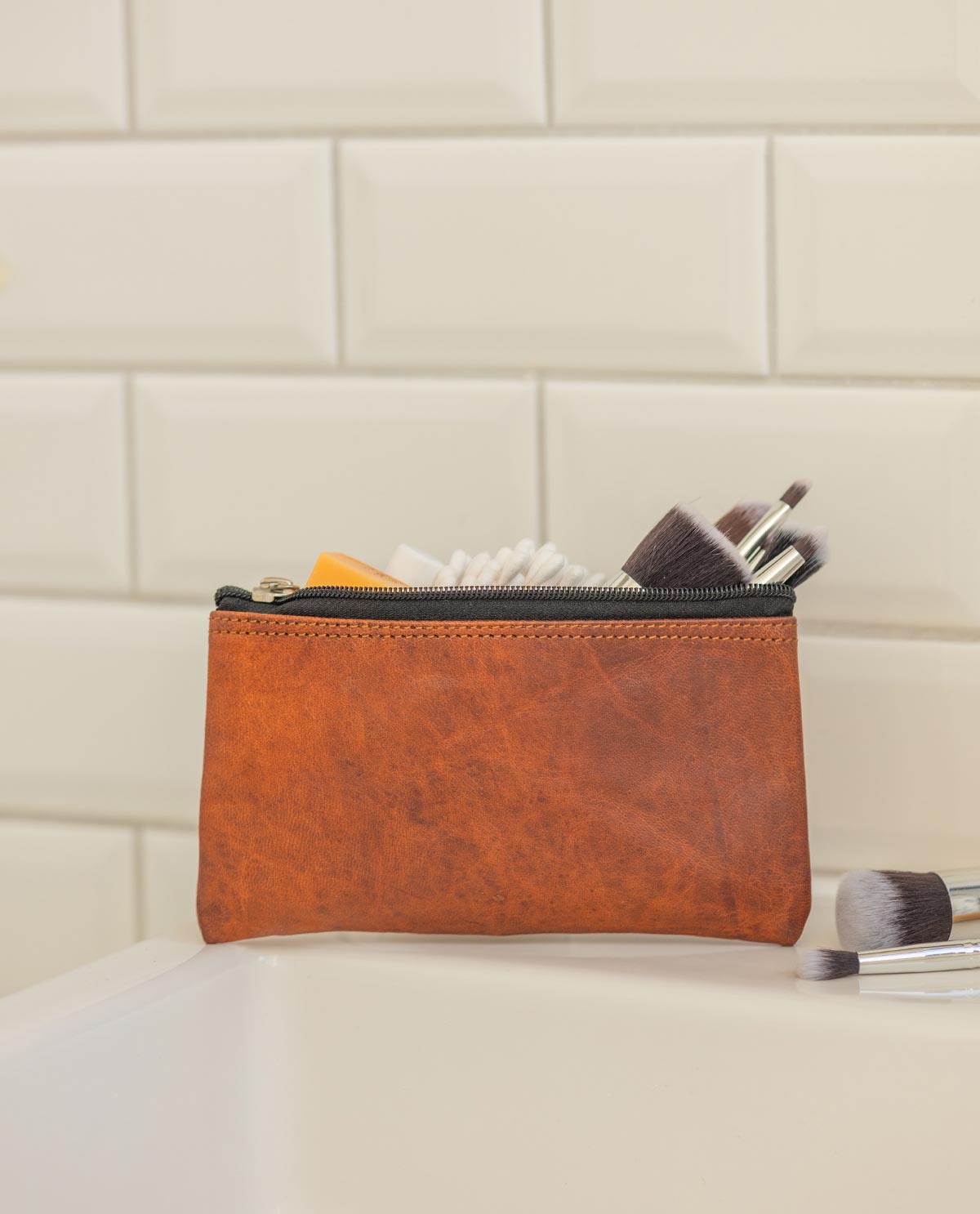 make-up bag purse traveling bag document folders Cosmetics bag utensil case vintage Brown leather