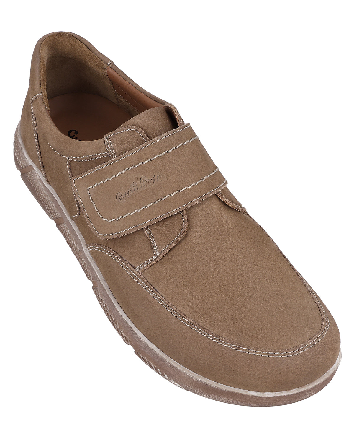 Inside, you'll find a smooth brown lining and a softly padded insole with Gusti Leather print that cushions every step comfortably. Decorative stitching on the heel and sides gives "Vito" additional structure, while the large Velcro fastener ensures optimal support and flexibility. The Gusti Leather logo embossed on the strap adds an elegant accent and rounds off the design. With "Vito," you are choosing leather shoes that harmoniously combine style, everyday practicality, and comfort.