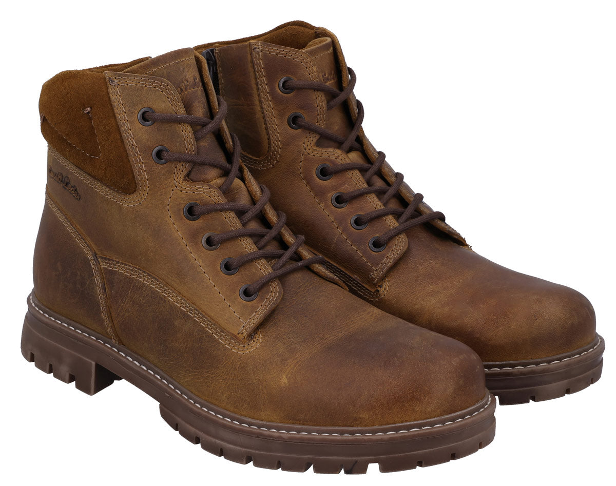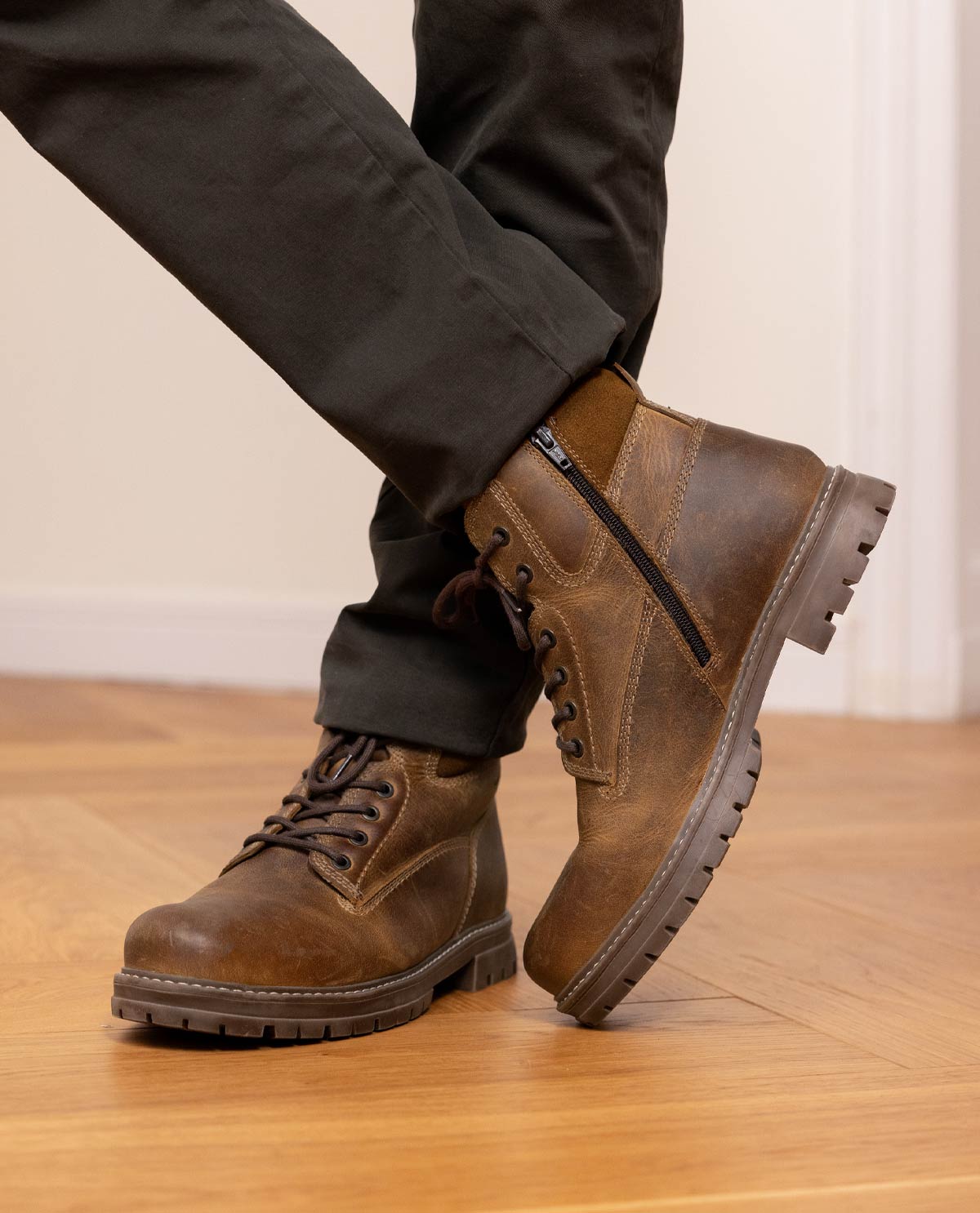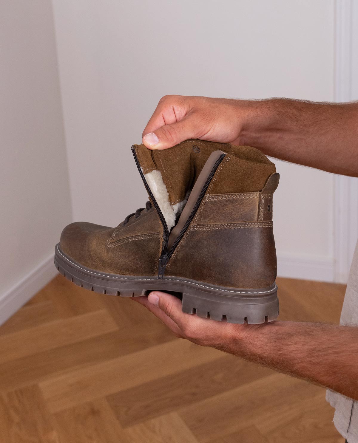 With "Falco", you are well prepared for the cold season. These high-quality winter shoes made from the finest cowhide leather impress with their robust craftsmanship and modern look. The classic lace-up design with sturdy metal eyelets offers a secure fit, while the side zipper makes putting on and taking off particularly convenient. The double stitching and the reinforced heel provide additional stability and durability. The softly padded shaft gently hugs your leg and prevents pressure points – perfect for long winter days full of activity.