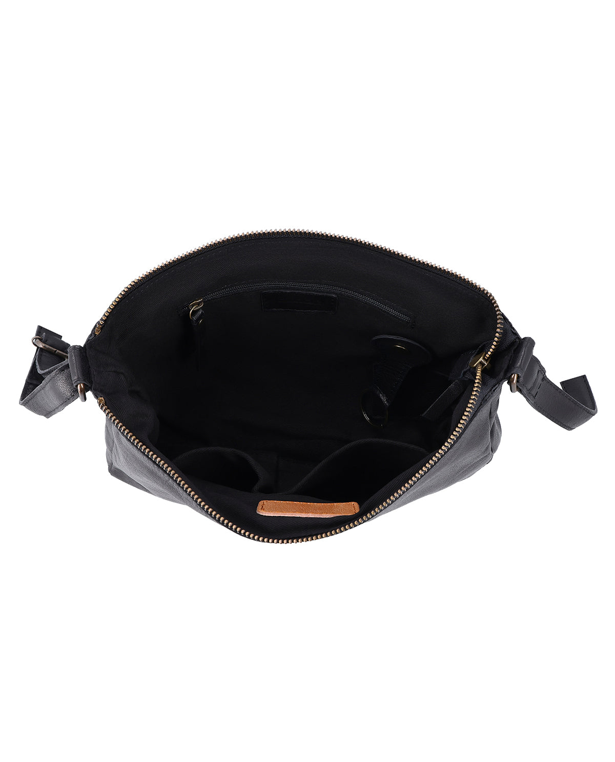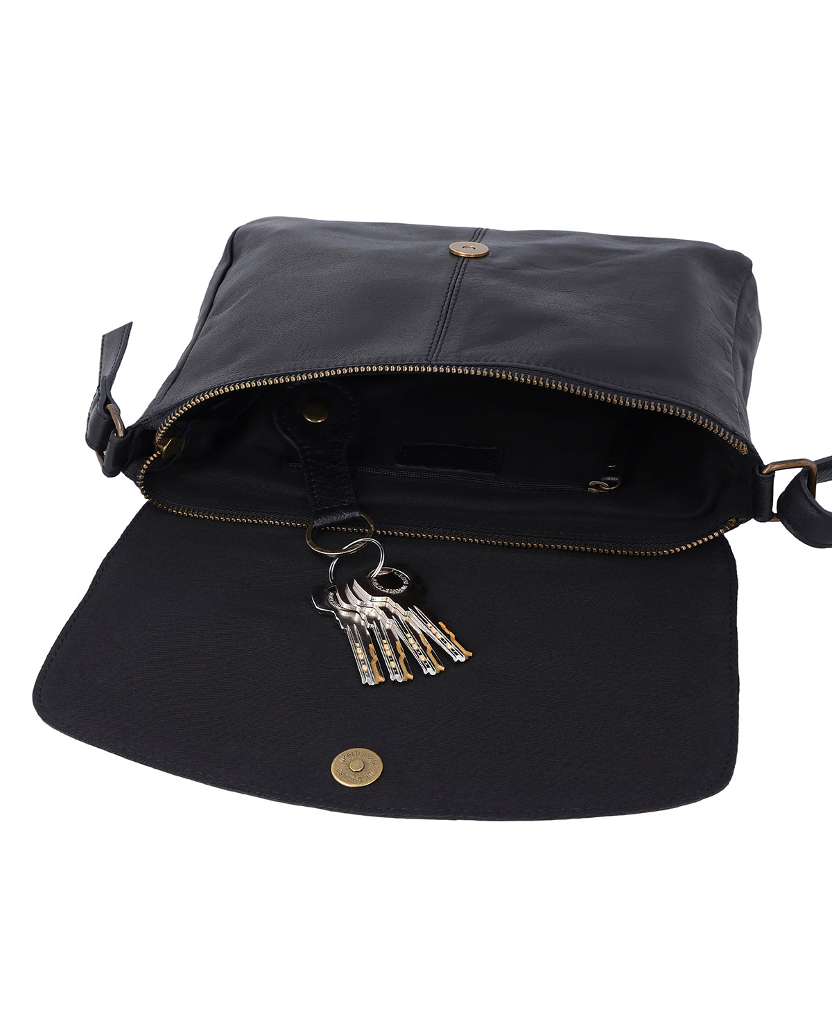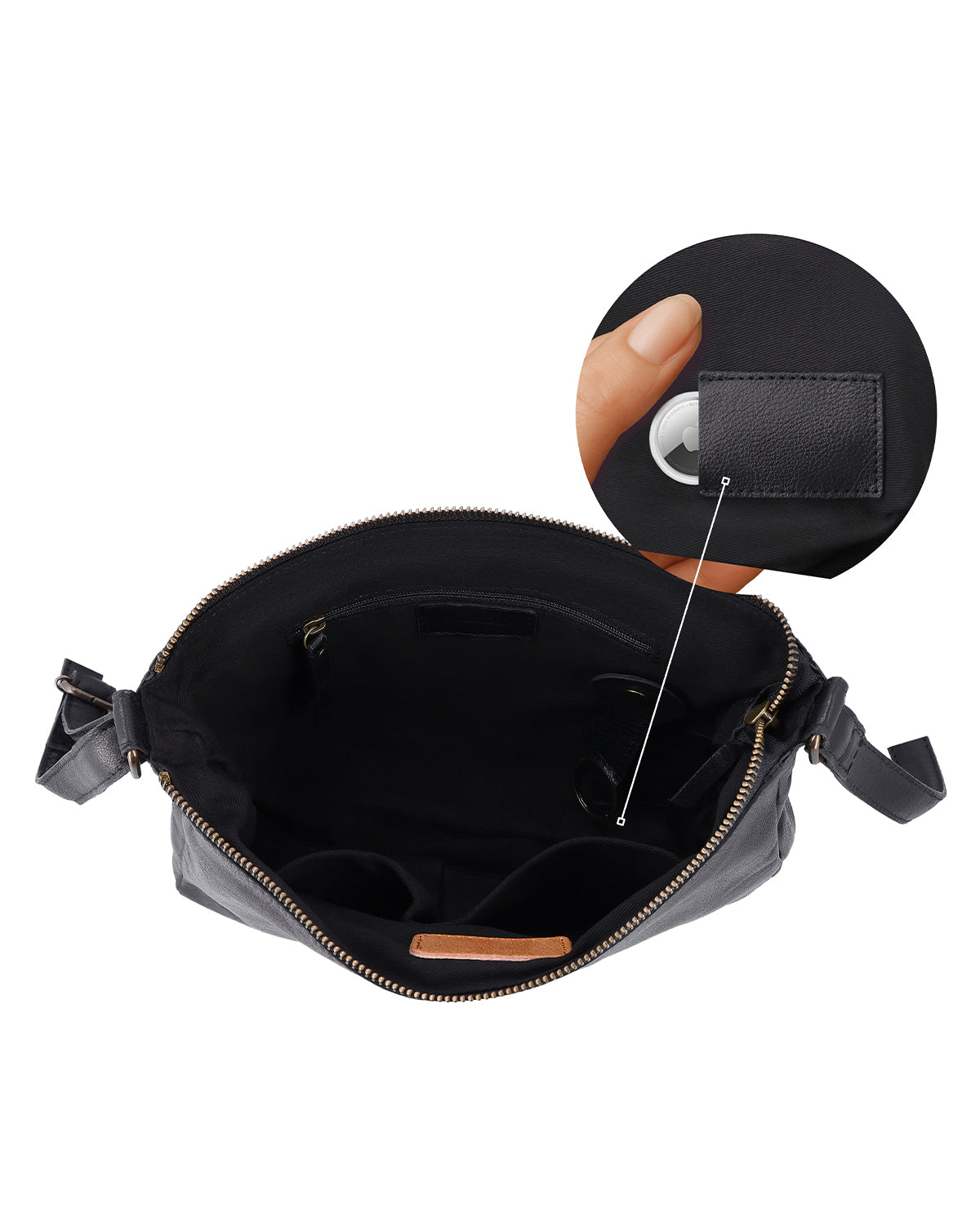 A black handbag is just as much a classic must-have as the famous little black dress. Our Maisie not only offers a subtle look, but is also the perfect addition to any outfit – whether for everyday use or special occasions. With enough space for your wallet, smartphone, and keys, as well as a notebook or cosmetics bag, it offers everything you need. To save you from having to search for your keys, Maisie also features a practical key ring holder. Thanks to side pockets and an additional zippered interior compartment, you can always keep track of your belongings. For extra security on the go, Maisie also has a secret AirTag compartment so you can find your bag more easily at any time. Maisie ensures that you are always well organized and stylish on the go, without compromising on functionality. Inspired by the flair of Berlin, she reflects urban chic.