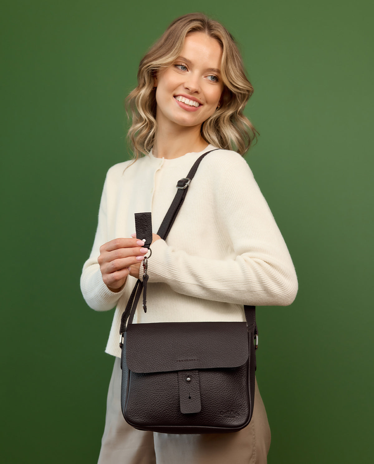 "Bonny" is the perfect companion for your everyday life – compact, stylish, and pleasantly light. Its high-quality leather gives the bag an elegant structure, while the simple easy-closing system with snap fastener ensures that you can store your most important items quickly and securely. Whether you're strolling through town, on your way to work, or meeting friends, "Bonny" blends effortlessly into your look while remaining reliable and charming.