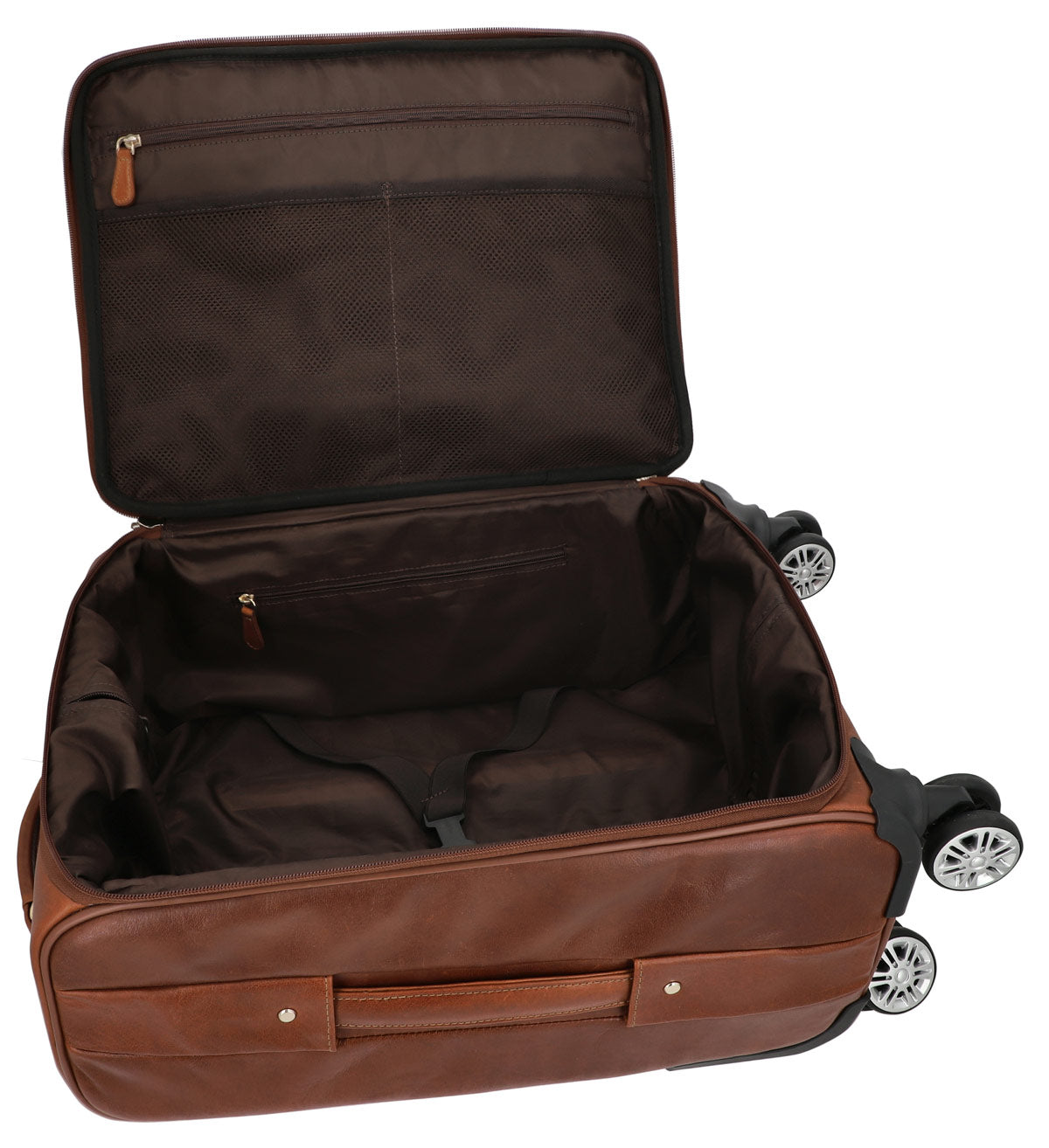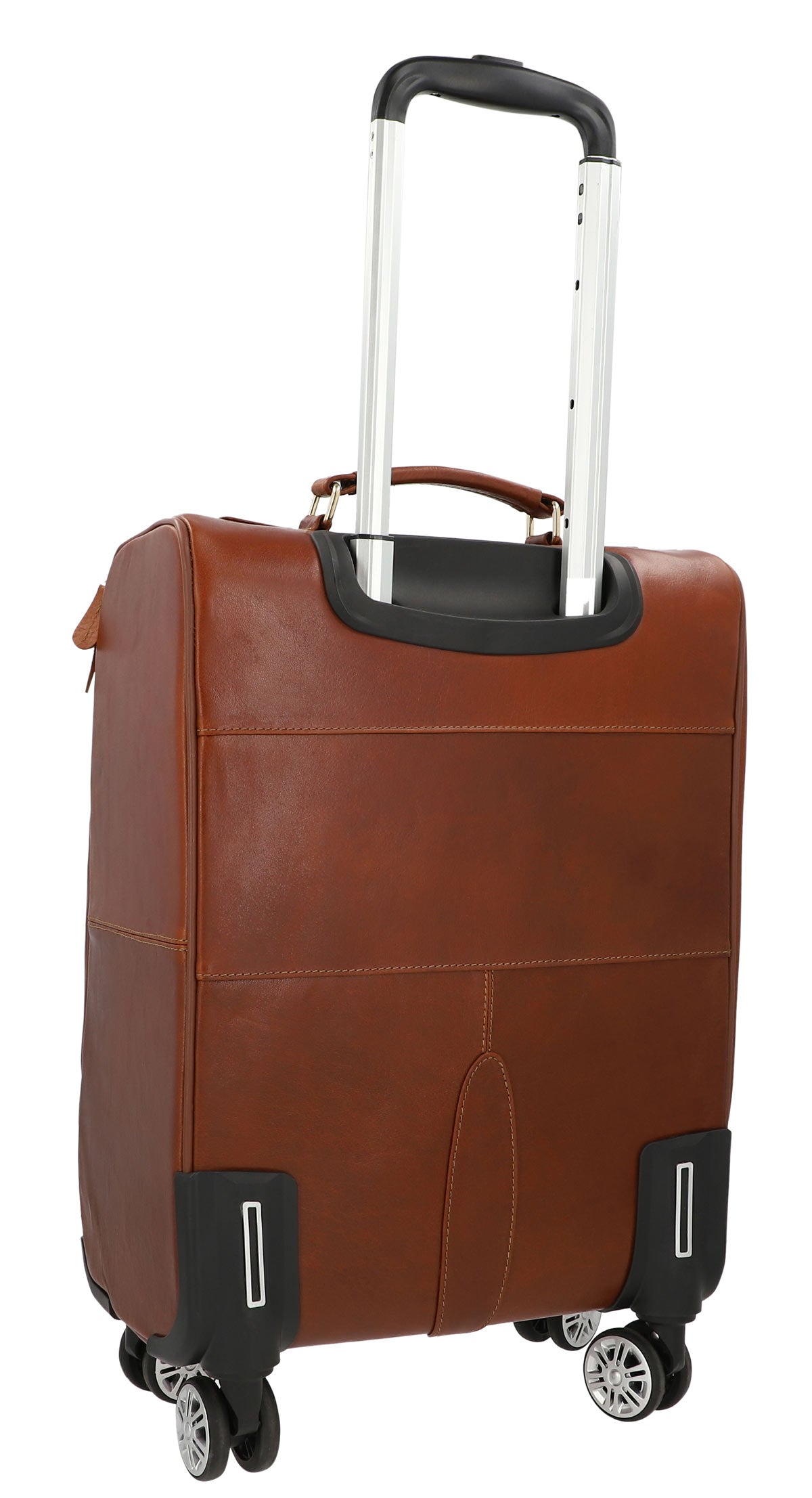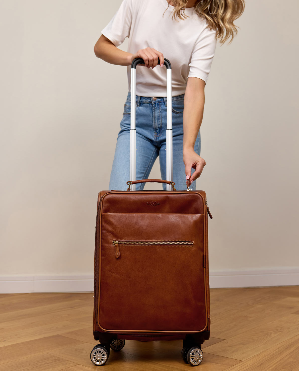 Designed for adventurous travellers to take on business trips, weekend getaways, or extended holidays, our brown leather trolley suitcase has plenty of space for your belongings and will turn heads with its subtlely chic look. It has durable wheels and an extendable handle so that it's easy to transport, even on long-haul trips.