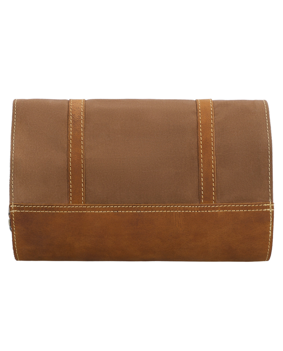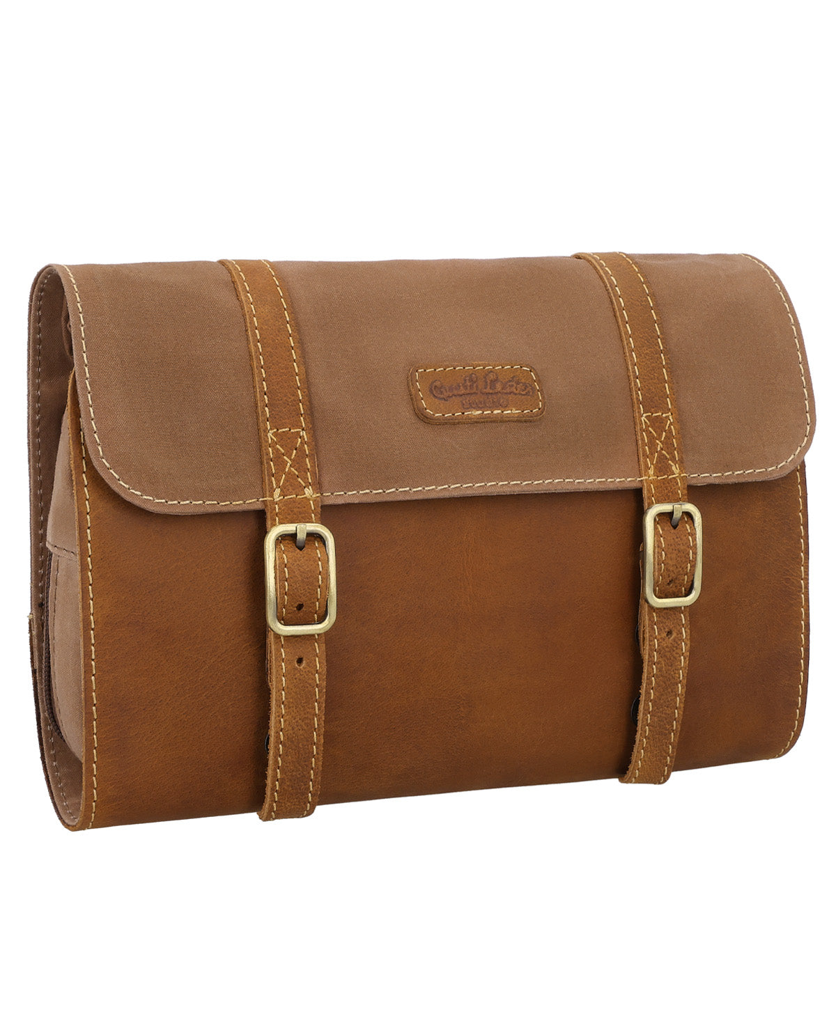 “Rodney's” the gift that just keeps on giving. We've really thought of everything with this toiletry bag. It's made of a mix of high-quality woven canvas and buffalo leather. There are lots of different sized and shaped pockets inside, so there's plenty of space for your toothbrush, shampoo, hairbrush, shaving kit, make-up and more. The water-resistant polycotton lining stops any leakages from getting out of control. “Rodney” comes with a sturdy metal hook, so you can hang him easily on your wall. His design is completed by the adjustable buckles and press buttons. Our toiletry bag “Rodney” is truly carefree!