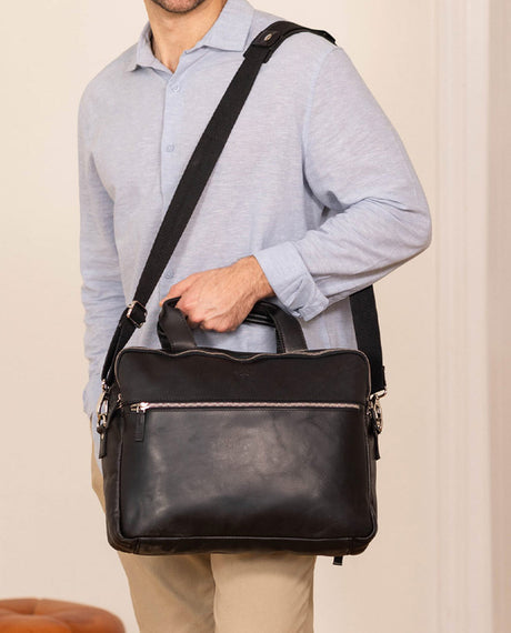 Please note: You can use a total of 30 characters, max. 15 per line. The exact colour of the engraving may vary slightly depending on the product and leather. The white text that you can see in the preview is solely for visibility and contrast, so you can better imagine how your engraving will look. If you only see a patch in the preview, the text of your choice will be engraved on a leather patch that will be sewn inside the bag. If you see the product in the preview, the engraving is positioned as shown in the preview image.