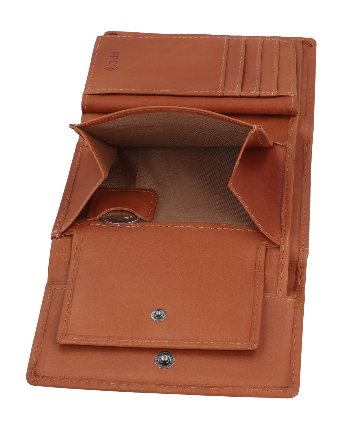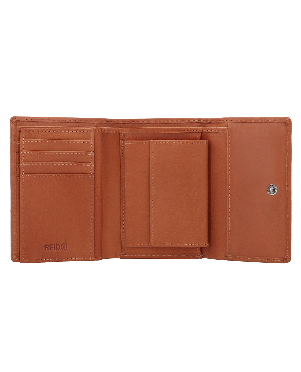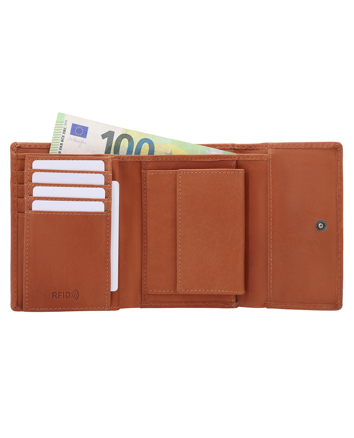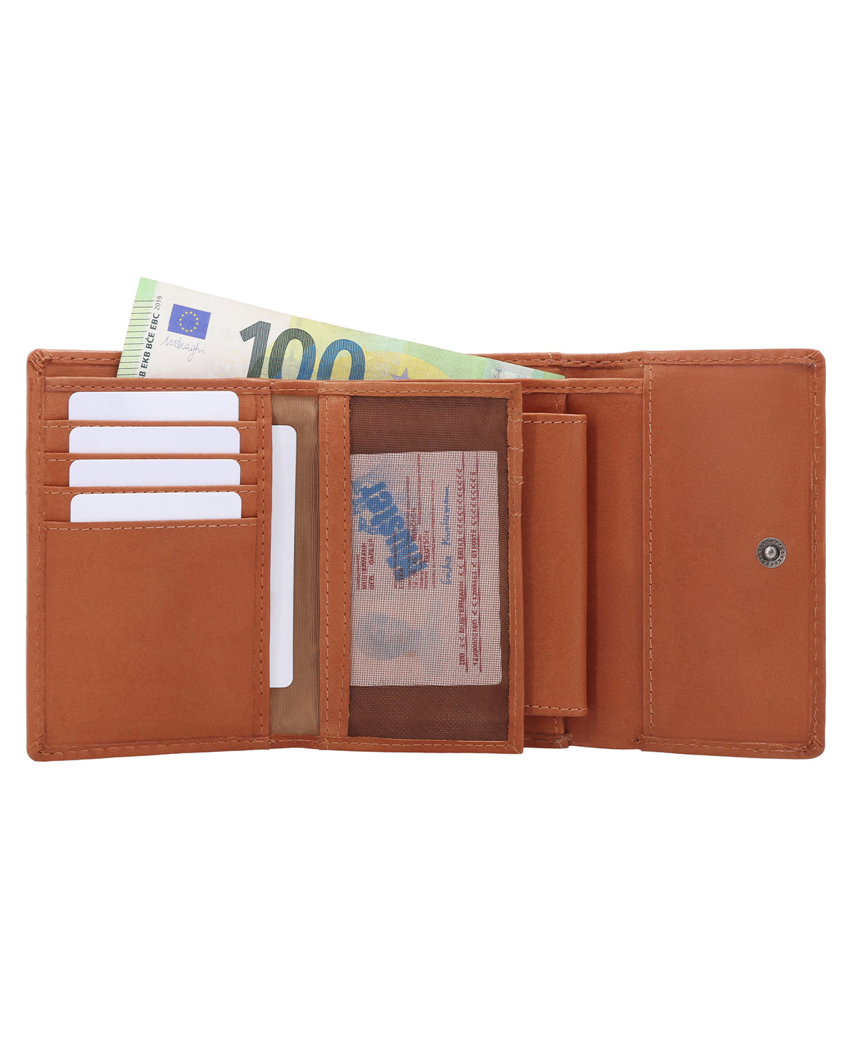 With "Tessa," quickly stowing away your change at the checkout is no longer a problem. After all, it usually takes long enough to pack your purchases. Whether you prefer to pay by card or cash, everything is quickly at hand and just as quickly back in your wallet. Our wallet is made of sturdy cowhide leather and can be closed with a snap fastener. Thanks to integrated RFID protection, your cards are also protected against unwanted scanning. For those little everyday moments, there is also an extra coin compartment for a single coin – perfect if you want to have a suitable coin quickly to hand. The logo is embossed on the outside, giving "Tessa" an even more high-quality, clean look. There is even an additional compartment on the back for tickets, for example, so you don't have to search for them on the train when the conductor is checking tickets. You can also find your ticket right away, and the days of thinking "Help, I've lost my ticket" are finally a thing of the past!